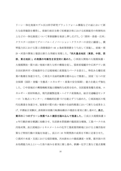 業の集積を加速させた。◇東北の全面的振興を踏み込んで推進し、国家「五つの安