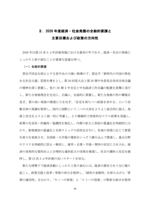 2026 年は第 15 次 5 ヵ年計画実施における最初の年であり、経済・社会の発展に