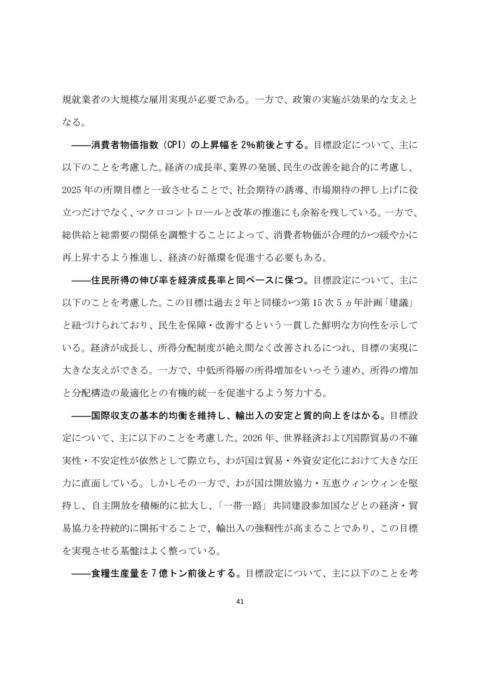 以下のことを考慮した。この目標は過去 2 年と同様かつ第 15 次 5 ヵ年計画「建議」