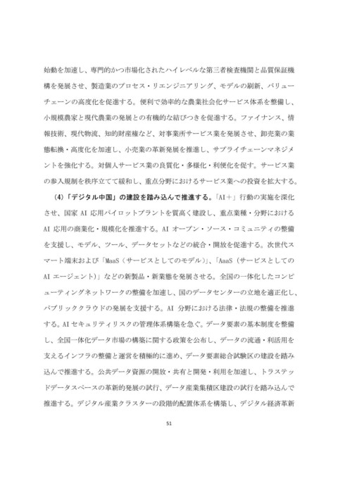 (4)「デジタル中国」の建設を踏み込んで推進する。「AI+」行動の実施を深化