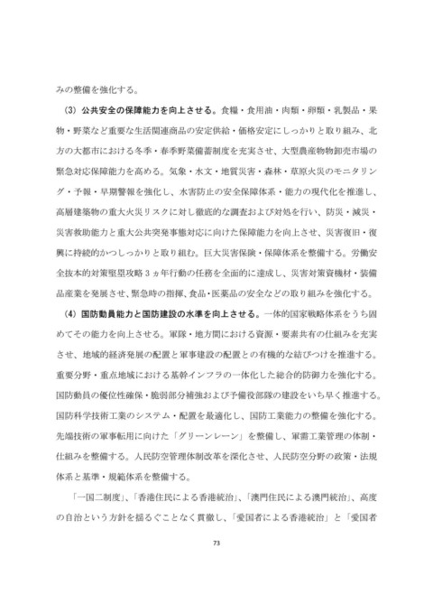 (4)国防動員能力と国防建設の水準を向上させる。一体的国家戦略体系をうち固