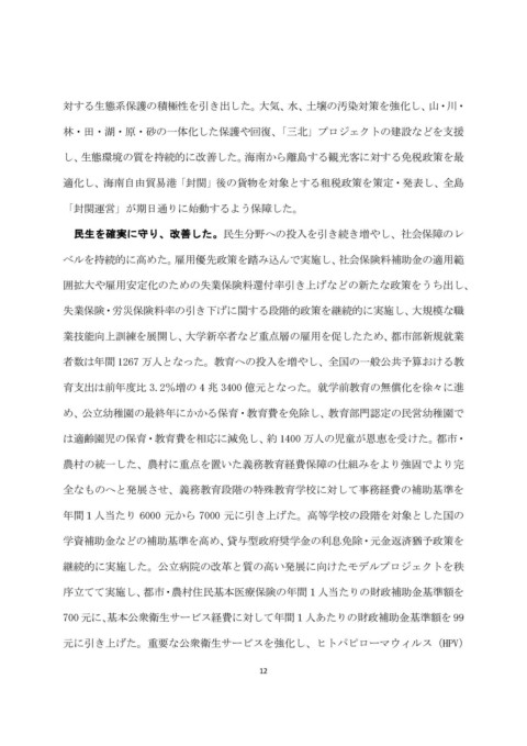 民生を確実に守り、改善した。民生分野への投入を引き続き増やし、社会保障のレ