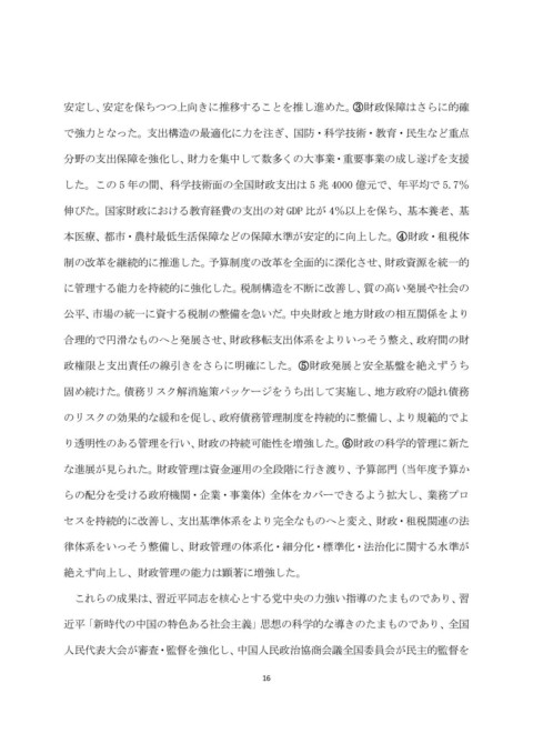 本医療、都市・農村最低生活保障などの保障水準が安定的に向上した。 ④財政・租税体