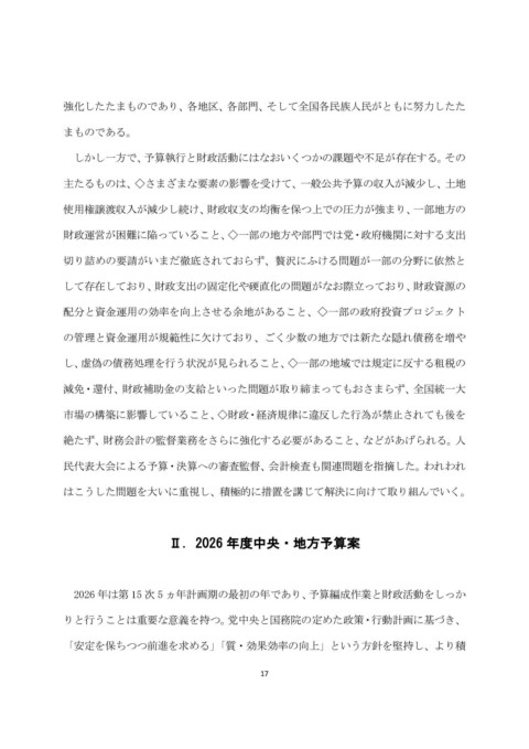 2026 年は第 15 次 5 ヵ年計画期の最初の年であり、予算編成作業と財政活動をしっか