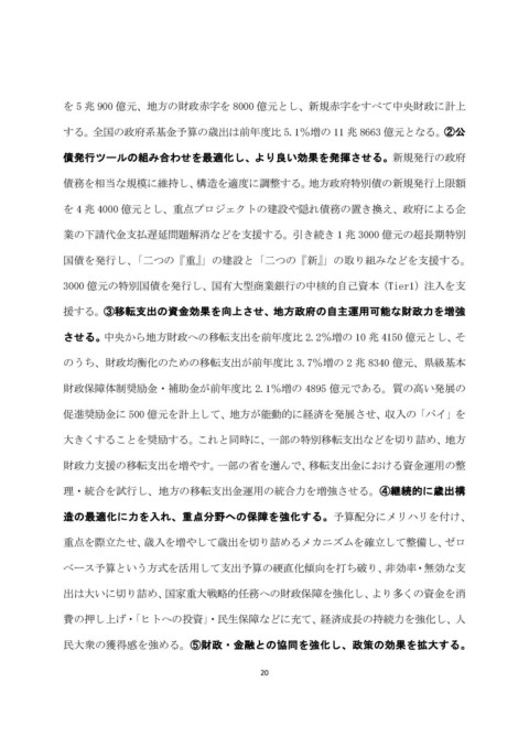 を 4 兆 4000 億元とし、重点プロジェクトの建設や隠れ債務の置き換え、政府による企