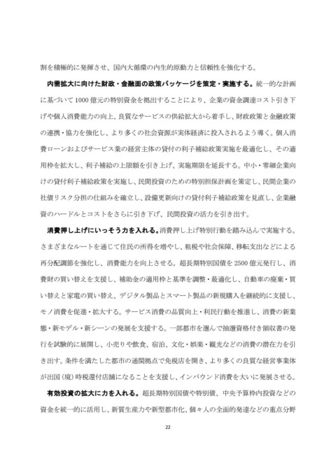 げや個人消費能力の向上、良質なサービスの供給拡大から着手し、財政政策と金融政策