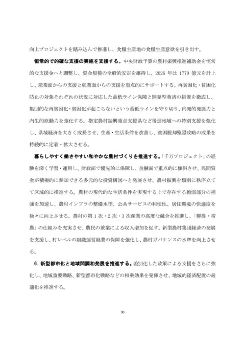 6.新型都市化と地域間調和発展を推進する。 差別化した政策による支援をさらに強