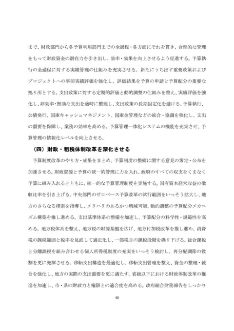 進を加速し、市・県の財政力と権限との適合度を高める。政府総合財務報告をしっかり