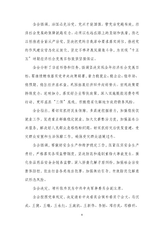 全会分析了当前形势和任务,强调坚决实现全年经济社会发展目
