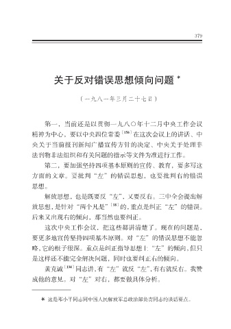 要更多地宣传坚持四项基本原则。对“左”的错误思想不能忽