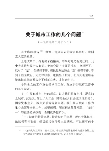 (二)城市的接管问题。接收城市的问题,现已大体解决,