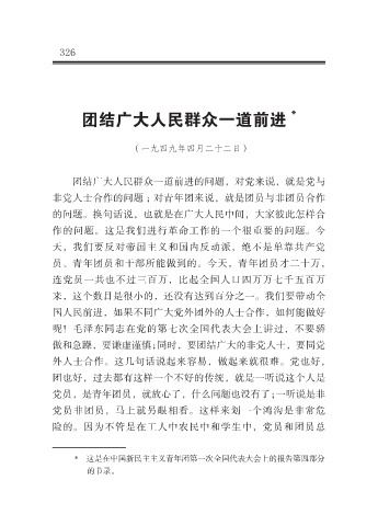 非党人士合作的问题 ;对青年团来说,就是团员与非团员合作