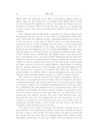 The meritorious services of Comrade Zuo Quan are indelible. A