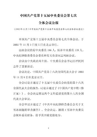 (2002年11月5日中国共产党第十五届中央委员会第七次全体会议通过)