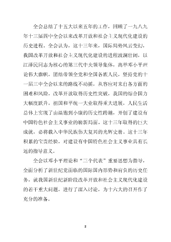 全会总结了十五大以来五年的工作,回顾了一九八九