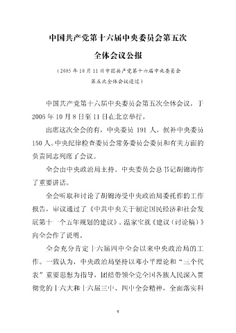 (2005 年 10 月 11 日中国共产党第十六届中央委员会