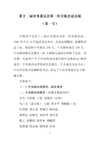 Page 2 - 第十二届中央委员会第一次全体会议公报(第一号)